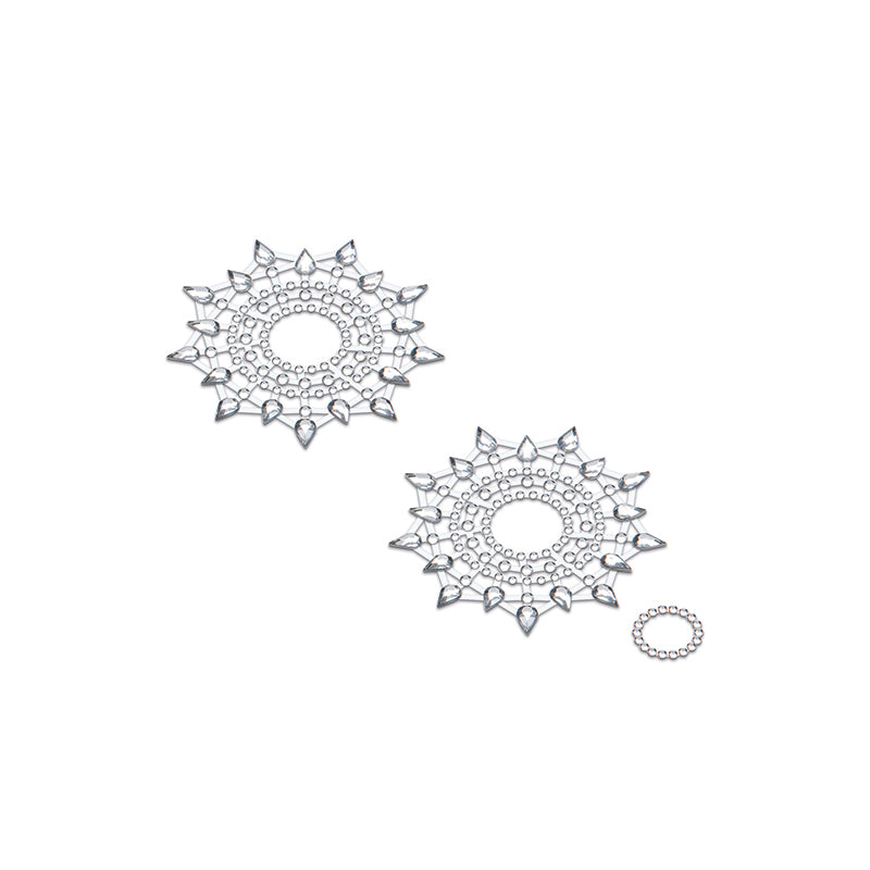 Mit funkelnden Kristallen in sieben aufregenden Farbkombinationen betont Petits Joujoux’ Gloria die weiblichen Rundungen und setzt verspielt sinnliche Akzente. Über 300 glitzernde Steine sind auf transparenten Netzen angeordnet, die – mit hautverträglichem Kleber versehen – ganz unkompliziert angebracht und entfernt werden können. Jedes von Glorias glamourösen Sets besteht aus drei Teilen, die um Brustwarzen und Venushügel aufgebracht für reichlich knisternde Erotik sorgen.