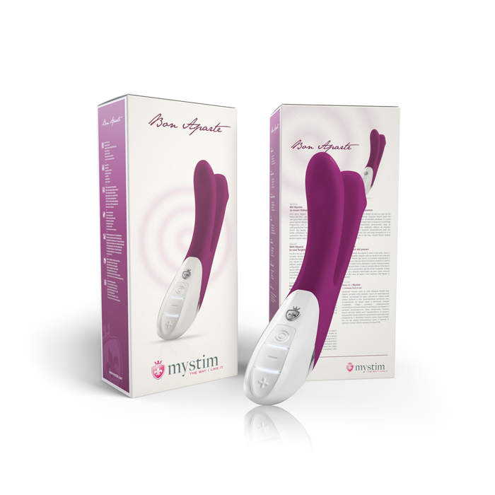 Mystim Bon Aparte оправдывает своё название: его двухсекционный гибкий корпус открывает целый мир соблазнительных возможностей для игр. А поскольку каждая часть оснащена отдельным вибромотором, работающим одновременно в 8 различных программах и 5 уровнях интенсивности, уникальная форма создаёт одновременные ощущения в разных зонах. Этот привлекательный вибратор длиной 25 см и толщиной двух частей 2,3 см и 2,6 см соответственно не оставит вас равнодушными.
